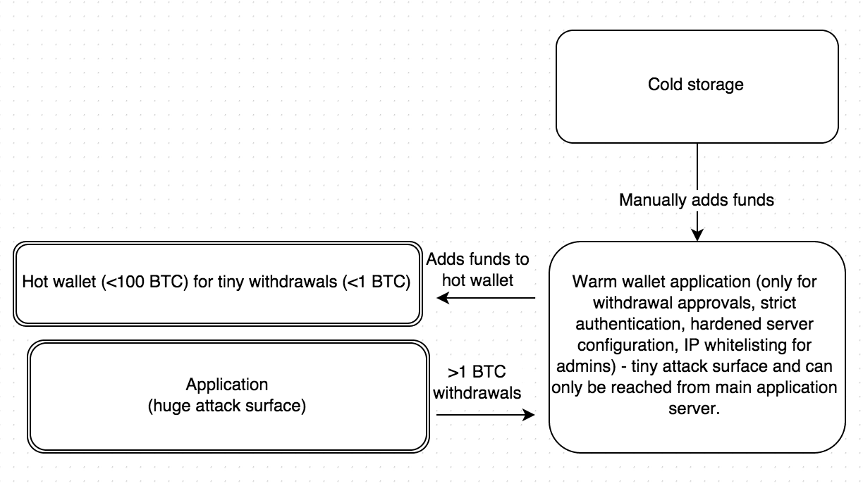 I cant edit the above, so wanted to add that manual approval for withdrawls above the hot wallets balance likely wouldnt stop some hacks, especially if they did not go to ask for a huge amount of bitcoins.